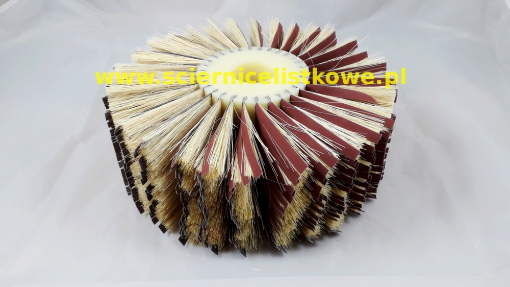 Ściernica/Szczotka AGAWA z listkami z płótna elektrokorundowego lub cyrkonowego stosowana jest do szlifowania międzyoperacyjnego i końcowego elementów o nieregularnych kształtach elementów drewnianych i metalowych, w tym stali nierdzewnej INOX, aluminium, czy mosiądzu. Włókno agawy zabezpiecza listki materiału ściernego przed wzajemnym ścieraniem się i daje odpowiedni docisk bez konieczności stosowania wysokich obrotów.