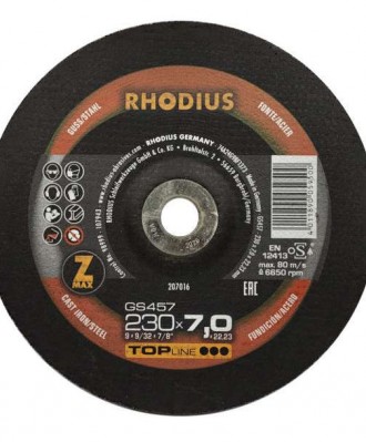 GS456 Z-MAX - najwyższej jakości tarcze szlifierskie z dodatkiem ziarna cyrkonowego do specjalnych zastosowań. Do agresywnego szlifowania wszystkich rodzajów żeliwa i stali. Bardzo wysoka wydajność skrawania i długa żywotność przy szlifowaniu odlewów z pozostałościami piasku. Przeznaczone do szlifowania żeliwa szarego, żeliwa sferoidalnego, stali stopowej, budowlanej, zbrojeniowej, do specjalnych zastosowań. Używane do szlifowania krawędzi, płaszczyzn, wyrównywania spawów, szlifowania odlewów z pozostałościami piasku.